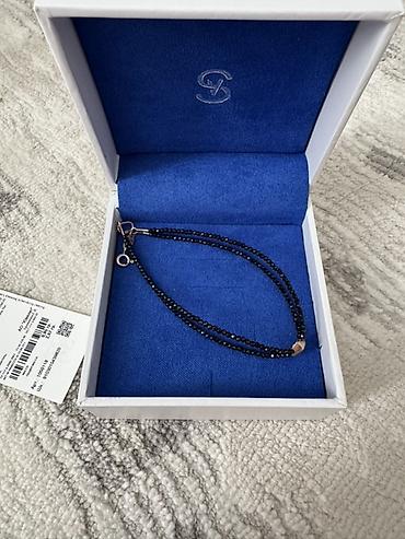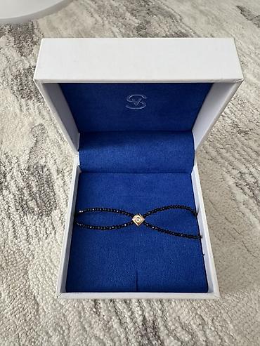- Декор: центральный элемент из золота с бриллиантом; двойная нить мелких чёрных фасетированных бусин (проволока/сталь пр. шах. 1,75 чёрный)