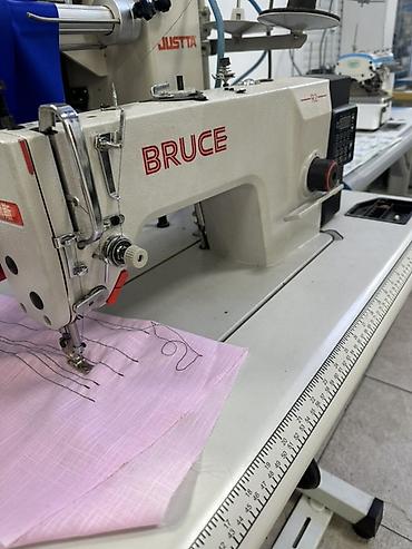 - Прямая строчка промышленной швейной машины BRUCE (серия B2): электронный блок управления сбоку, регулировка скорости, позиционирование иглы, удобный регулятор натяжения. Подходит для пошива легких и средних тканей, аккуратная стежка, плавный ход. Большой стол с линейкой-разметкой для точной подачи материала, коленоподъемник, нитенаправители и намотчик шпульки.