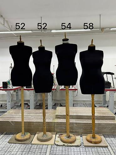 - Портновские манекены женские полуторсы на стойках: размеры 52, 52, 54, 58 (подписаны). Обтяжка черным трикотажем, деревянные стойки с круглыми основаниями, удобны для примерки, ВТО и демонстрации изделий.