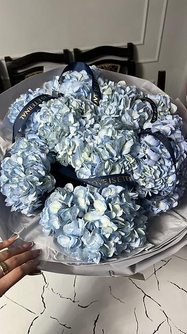 Букет из голубых гортензий - Состав: крупные соцветия гортензии