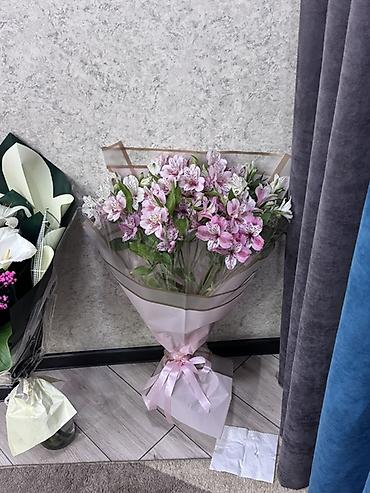 - Моно‑состав: обильная россыпь альстромерий с зеленью