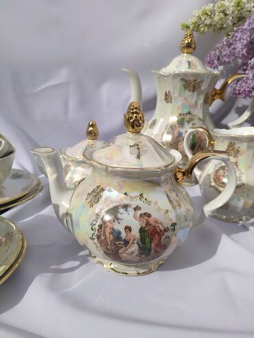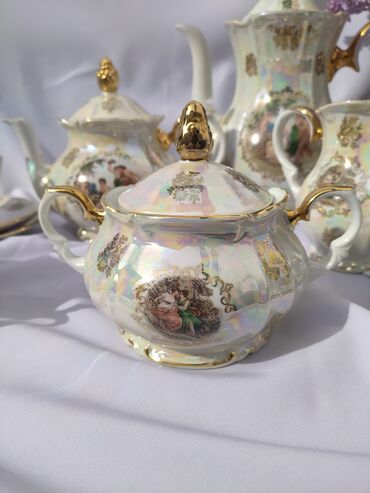 Чайный Сервиз Мадонна.ГДР.KAHLA..Он изготовлен из тонкого фарфора с перламутровым переливом и украшен золотым обрамлением.35000 сом .торг уместен.