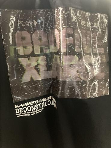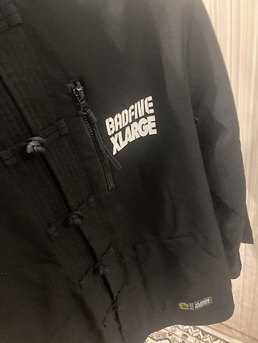 - Принты и нашивки: белый логотип BADFIVE XLARGE на груди, фирменный патч у низа; крупный графический принт на спине с надписями DECONSTRUCTION и иероглифами; контрастный принт на рукаве.