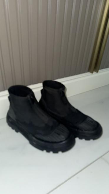 Черные ботинки/полусапоги с молнией по центру и защитным резиновым рантом. Почти новые Zara оригинал