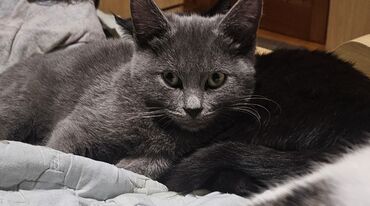 🐾 Серый котёнок — нежный и спокойный, с бархатной серебристой шерстью и глубоким взглядом зелёными глазами.Мужского пола.Порода русская голубая с британской