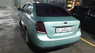 Chevrolet Lacetti седан, серебристый цвет, на киргизских номерах (KG 06). Кузов 4‑дверный, тонированные стекла по кругу. Литые диски, противотуманные фары, хромированная вставка на решетке радиатор...
