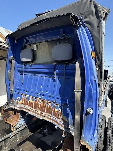 Подходит для установки на раму легкого грузовика азиатского типа. Отлично для переоборудования под борт/тент, дачного и коммерческого использования. Внешнее покрытие с очагами коррозии и облупившейся краской видны на фото; конструкция, петли и каркас присутствуют. Размеры и совместимость по раме ориентируйтесь по фото узлов и креплений.