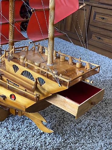 - В кормовой части встроен выдвижной ящичек с бархатной вставкой — можно использовать как тайник/шкатулку.