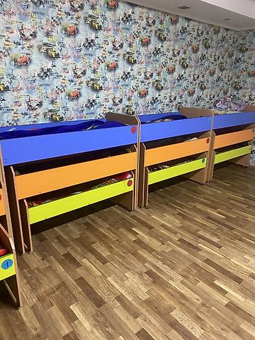 - Размеры спальных мест: стандарт для детсада (ориентировочно 120–130 см в длину, 55–60 см в ширину; удобно для дошкольников). Общая высота компактная, подходит для установки вдоль стены.