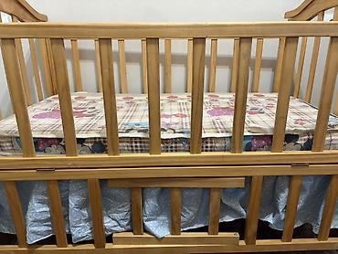Детская деревянная кроватка с матрасом - Материал: натуральное