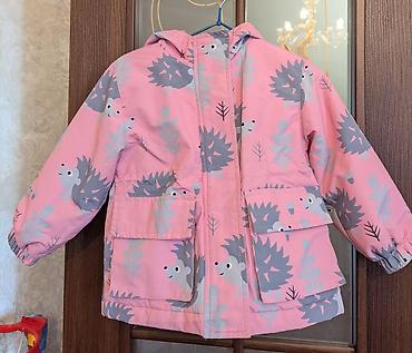 Розовая на ярлыке: 24M/92. Плотная влагозащитная ткань с мягкой подкладкой. Капюшон несъёмный. Удобная для межсезонья и прохладной погоды, яркая и практичная. 250 сом.