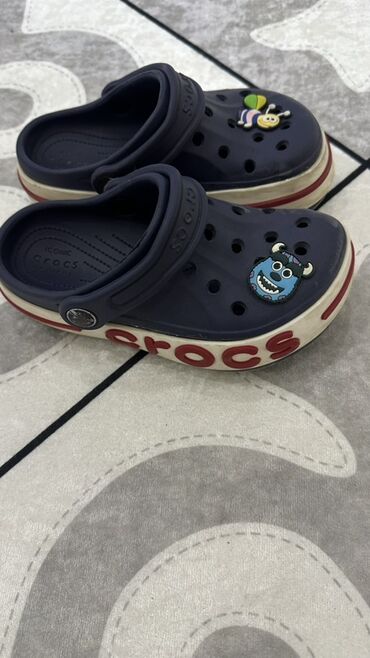 - Боковой логотип crocs на белой подошве с красной окантовкой