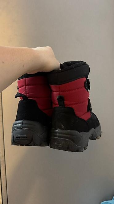 Детские зимние ботинки-термо, водонепроницаемые (надпись Waterproof на боку).36 размер, 1 раз одевали. - Цвет: черный/серый с красными акцентами и контрастной строчкой - Верх: комбинированные изно...
