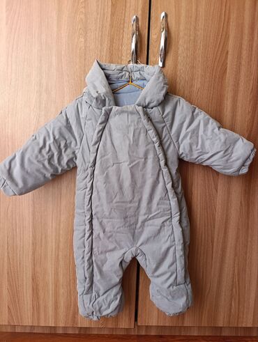 1) Тёплый зимний комбинезон-конверт серого цвета