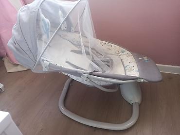 - Универсальная конструкция 2-в-1: стационарный шезлонг и режим укачивания на изогнутой основе.