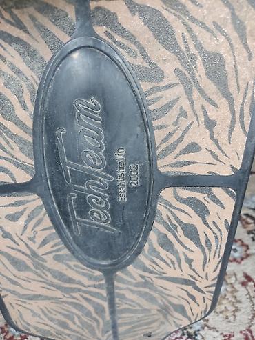 - Дека с верхним антискользящим покрытием с тигровым узором, логотип TechTeam (Established in 2002) по центру. Форма двойной киктейл с выемками под колёса для большего клиренса и манёвренности.