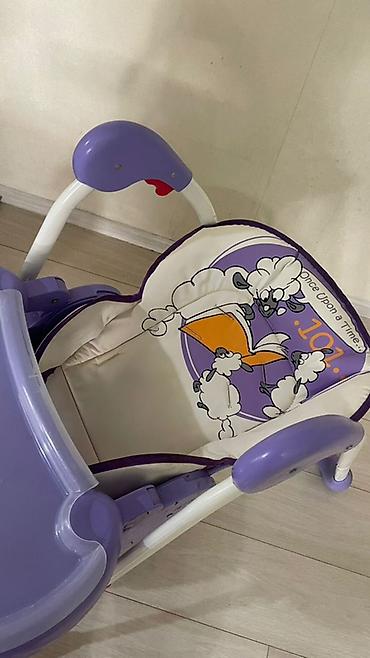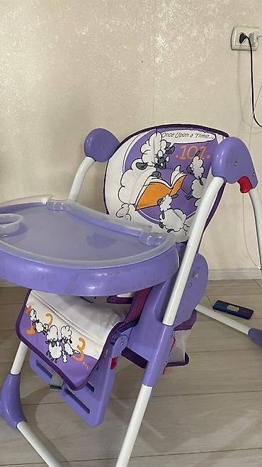 Удобен для кормления и игр, легко протирается, компактно складывается для хранения. Цвет: лиловый/белый с рисунком.