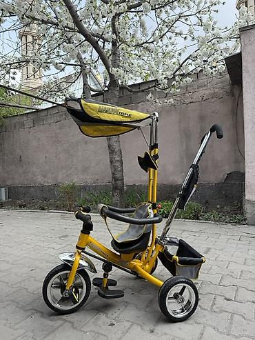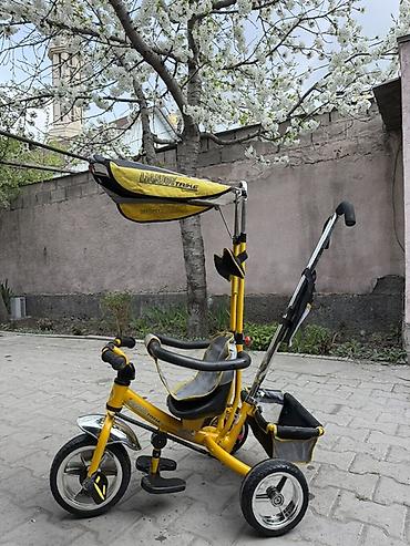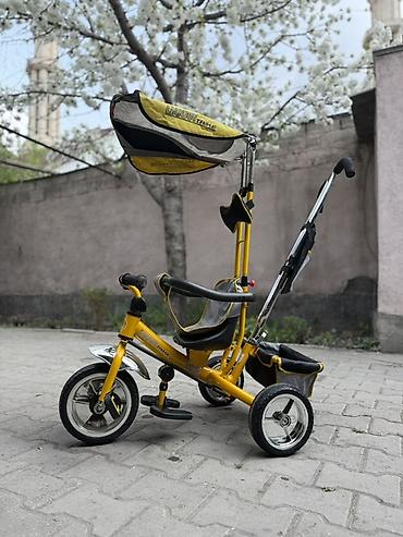 Детский трехколесный велосипед-каталка LEBAYO TRIKE (желтый/серый) с родительской ручкой.
