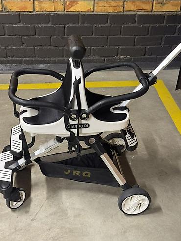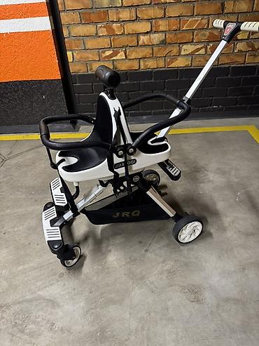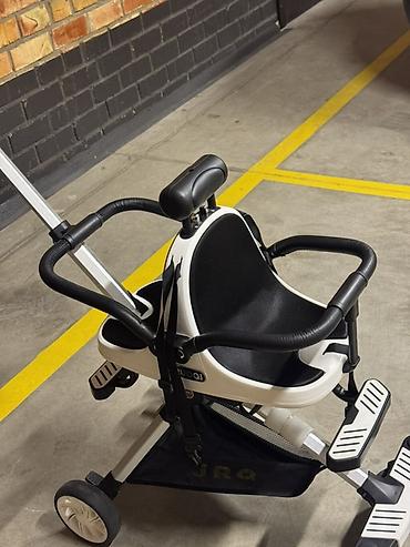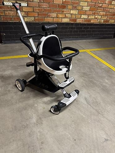 - Два уровня складных подножек: передние поворотные для маленьких детей и нижняя платформа для отдыха ног.