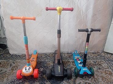 - Два пластиковых самоката с передними сдвоенными колесами (оранжевый и голубой)