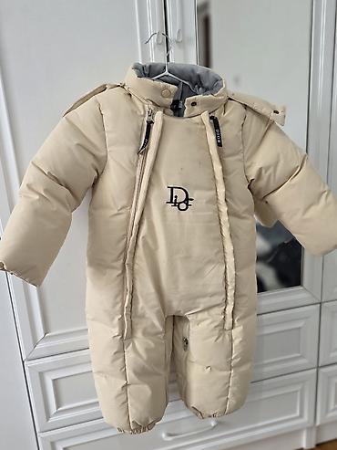 Детский зимний комбинезон бежевого цвета с капюшоном, предназначенный для защиты от холода. Комбинезон выполнен из стеганого материала, обеспечивающего тепло и комфорт. Модель имеет две молнии спереди для удобства надевания и снятия, а также высокий воротник и капюшон для дополнительной защиты от ветра и снега. Манжеты на рукавах и штанинах снабжены резинками для лучшей фиксации и сохранения тепла. Подходит для прогулок в холодное время года.