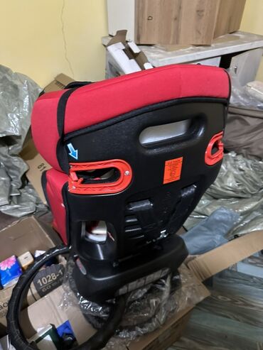 Детское автокресло (группа примерно 1/2), цвет черно‑красный. Особенности: - Анатомическая форма сиденья с глубокими боковинами для защиты головы и корпуса. - Пятиточечные ремни безопасности с цен...