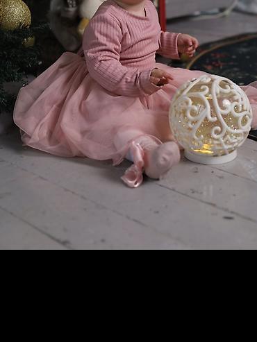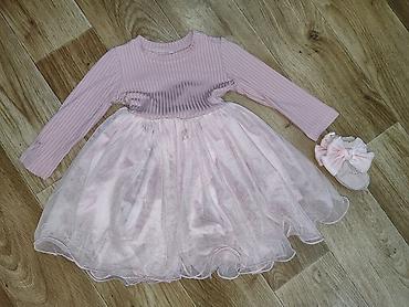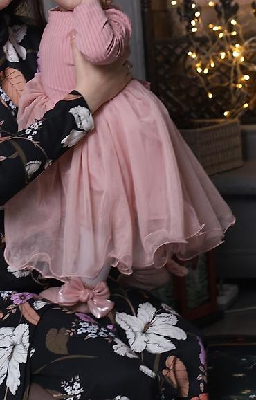 Нарядное детское платье для девочки с длинным рукавом. Размер на 9 мес(74) - Цвет: молочный верх, нежно‑розовая юбка.
