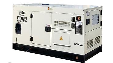 На фото представлены генераторы в кожухах брендов JCB и «Своя Енергія» с указанием номинала 40–50 kVA. Подходят для непрерывной и резервной работы, устойчивы к погодным условиям и рассчитаны на длительные нагрузки.