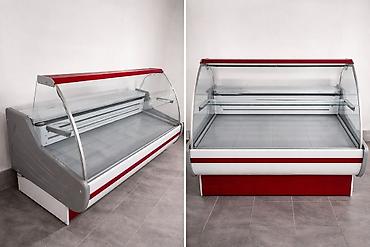 - Открывание со стороны продавца; удобный доступ к продуктам.