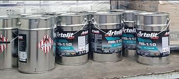 Упаковка на фото: металлические вёдра Artelit RB-110 (21 кг). На таре маркировка UN 3175 (огнеопасно).