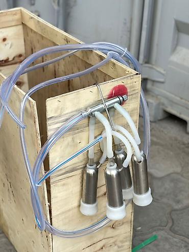 Доильный аппарат ROLF на колесах, предназначенный для доения коров. Он оснащен доильным ведром из нержавеющей стали и прозрачными шлангами. Аппарат имеет компактную конструкцию, установленную на колесах, что обеспечивает удобство перемещения. В комплект входят 4 доильных стакана, что позволяет одновременно доить несколько вымени. Аппарат оснащен электрическим двигателем и панелью управления с кнопками включения/выключения. Подходит для использования на небольших и средних фермах.