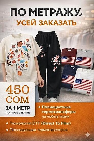 - Печать по метражу: 450 сом за 1 метр (на любые ткани).