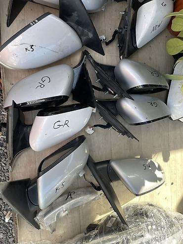 - Наружные зеркала: несколько вариантов для моделей K5/Optima (на корпусах пометки K5, GR и др.). С площадками крепления, разъемами проводки, часть с повторителями поворота.