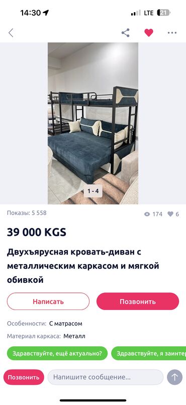 Кровать трансформер, Другой тип, Б/у, Двухстворчатая, С матрасом