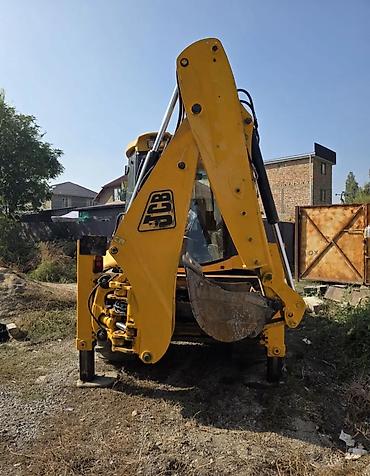 - Заднее экскаваторное оборудование с ковшом и опорами-«аутриггерами» для устойчивости при копке.