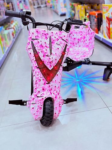 Дрифт-Кар На изображении представлен дрифт-кар KUQUAY. Это электрический трехколесный скутер, предназначенный для дрифта. Он оснащен мотором и не требует крутить педали, достаточно зарядить аккум...