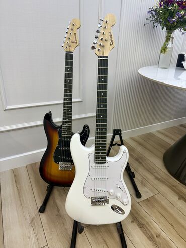 Электрогитары. Форма стратокастер, в разных расцветках, со звукоснимателями SSS.