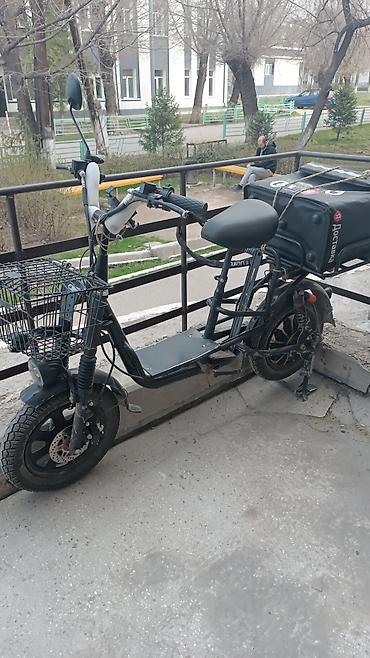 Электрический скутер-компакт с багажной корзиной в АРЕНДУ В ДЕНЬ 500СОМОВ - Электропривод: тихий ход, простое управление через ручку газа - Колеса с внедорожным протектором для уверенного сцеплени...