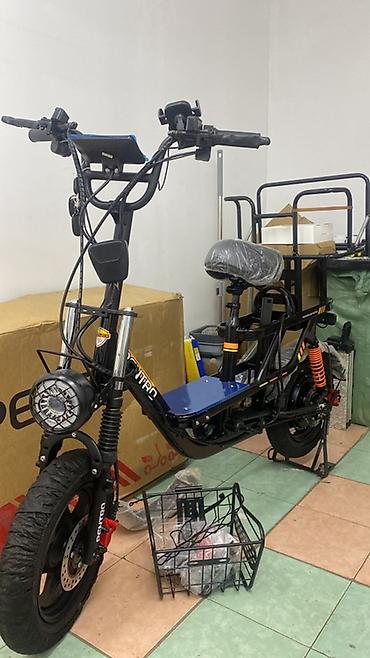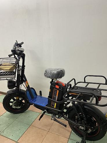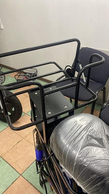 - Прочная стальная рама с двумя багажниками: объёмная передняя корзина и большой задний платформенный багажник с высокими бортиками для фиксации грузов.