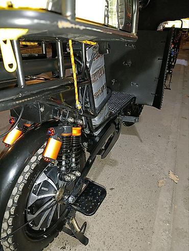 Электро велик эки батерейкасы менен - Компоновка: низкая рама, передняя корзина для мелочей, увеличенная задняя грузовая платформа с бортиками и стяжным ремнём. - Посадочные места: основное седло...