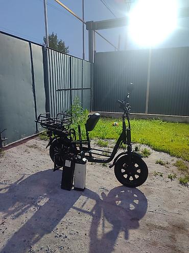 Электроскутер (электровелосипед-скутер) грузовой формат - Полноразмерная рама с заниженной посадкой и широким седлом. - Электродвигатель в заднем колесе, дисковый тормоз спереди. - Передняя и задн...