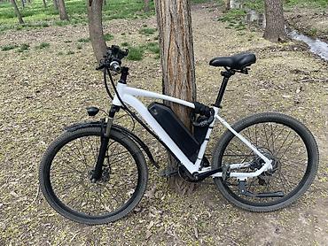 Электровелосипед горного типа (MTB) с центральным расположением аккумулятора на раме. Основные характеристики: матор350ваттный аккумулятор 36вольт.запас хода 40-50км с ассистентом до 60км хватит....