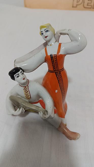 Фарфоровая статуэтка «Танец с баяном». - Сюжет: двое персонажей в
