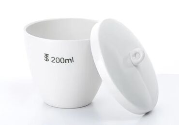 - Лабораторные тигли из коррозионно‑стойкого фарфора, с плотно прилегающими крышками и удобной петлей‑ухватом.