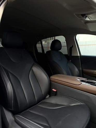 Hongqi — просторный 5‑местный кроссовер/седан с премиальным салоном из чёрной кожи и контрастными коричневыми вставками.