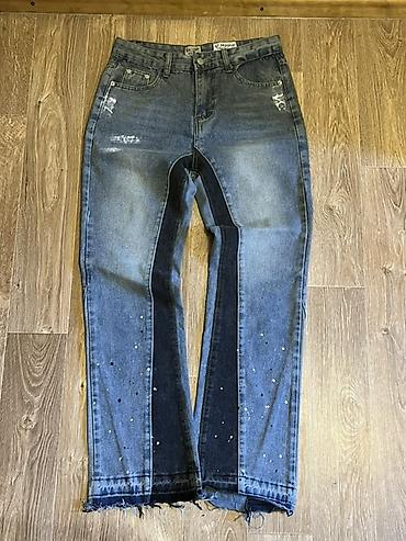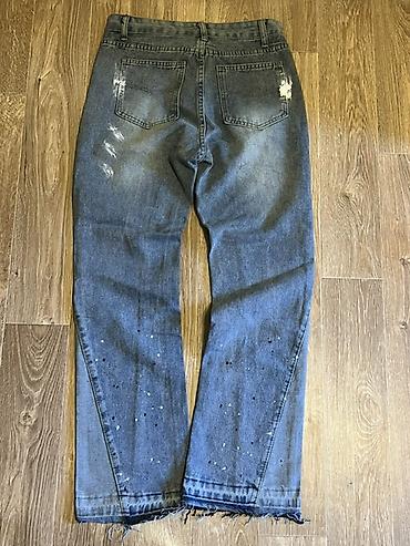 Стильные арт‑джинсы с выразительным контрастом и ручным «paint» эффектом — универсальная база для casual и streetwear образов.