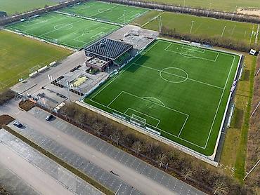- Комплекс из нескольких полноразмерных футбольных полей с разметкой тренировочными зонами и мини-полем.