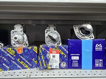 - Ассортимент генераторов и стартеров на полке – новые узлы в сборе.