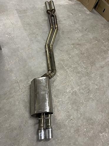 - Полный задний участок (cat-back/от средней части до заднего глушителя) с раздвоенными насадками.