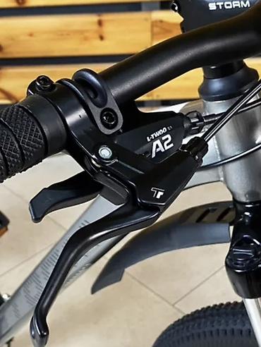 - Вилка: амортизационная STORM, ход ориентировочно 80–100 мм, с креплением под дисковый тормоз.